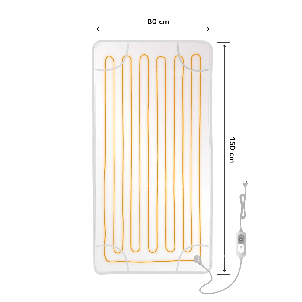 Dieses Wärmeunterbett wärmt Sie in kalten Nächten. Es verfügt über einen Überhitzungsschutz und eine automatische Abschaltung nach 3 Stunden. Genießen Sie einen wunderbar komfortablen und sicheren Schlaf.